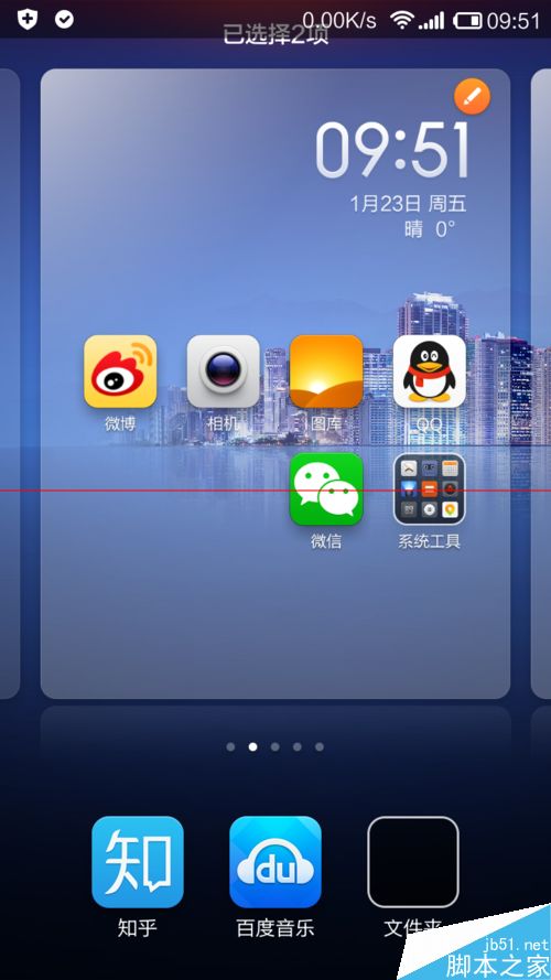 3、比方说我想把“百度音乐”和“知乎”移动到第二页,就点击这两个图标,图标就会暂时移动到屏幕下方。