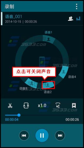 4)打开录制的会议,若想单独听其中一位的声音可将其余三个的关闭。(如下图)