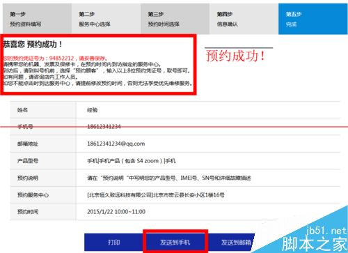 6、预约完成,我建议选择【发送到手机】,这样就可以避免遗忘预约号等问题发生啦