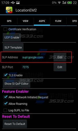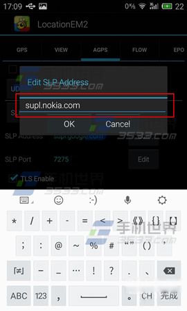 2)切换到【Location】页面点击【Location Based Service】,在【AGPS】栏中将【SLP Address】初始值为【supl.google.com】修改为【supl.nokia.com】或者改为【suplcn.sirf.com 】。(如下图)