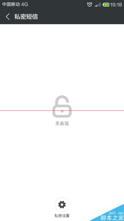 3、接下来,打开私密短信界面以后,点击最下面的“私密设置”按钮,进入私密短信的设置界面。