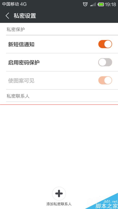 4、接下来,添加私密联系人同时设置私密短信密码,这样便可以顺利的体验私密短信功能啦。