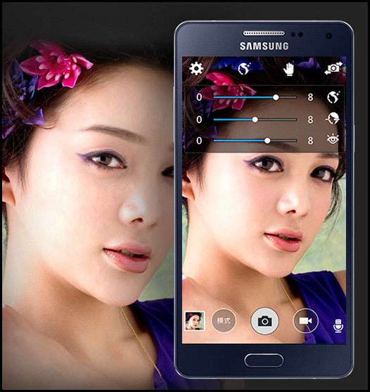 在三星全新推出的Galaxy A5中,增加了强大的自拍美颜功能,拥有修饰面部、瘦脸、放大眼睛等美颜操作,让自拍效果更佳,喜欢自拍的小伙伴们肯定迫不及待了吧!