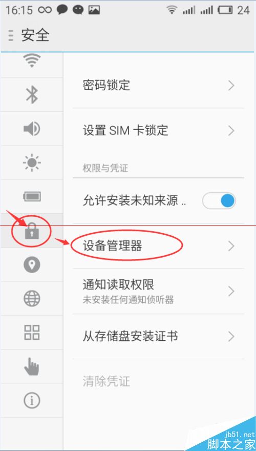 5、想要取消此锁屏功能,可以回到“设置”-“安全”-“设备管理”里取消激活该工具