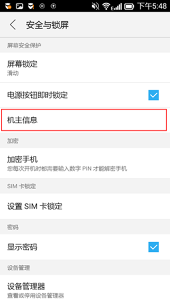 4.将“在锁定屏幕上选择机主信息”打勾;并填写要显示的内容