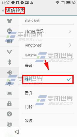打开魅蓝手机【设置】点击【声音和振动】,根据需求可以设置【电话铃声】及【短信铃声】,这里小编把【短信铃声】设置成了【胜利】。(如下图)