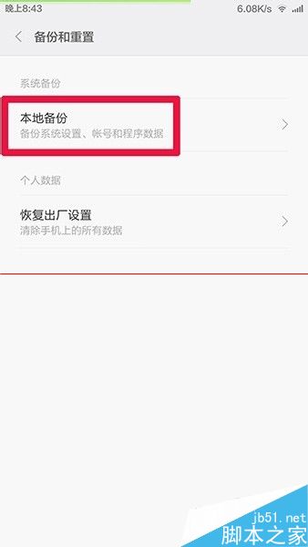 4、如下图,单击红框处 本地备份