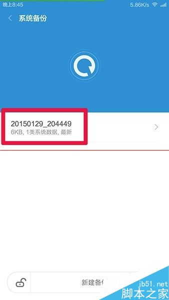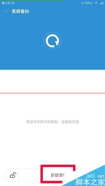5、如下图,单击红框处 新建备份