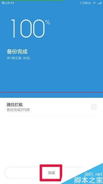 9、如下图,已经完成备份,单击红框处 完成