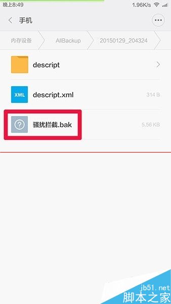 12、如下图,可以看到备份的文件在这里,可以传到电脑里或发到别一台手机上