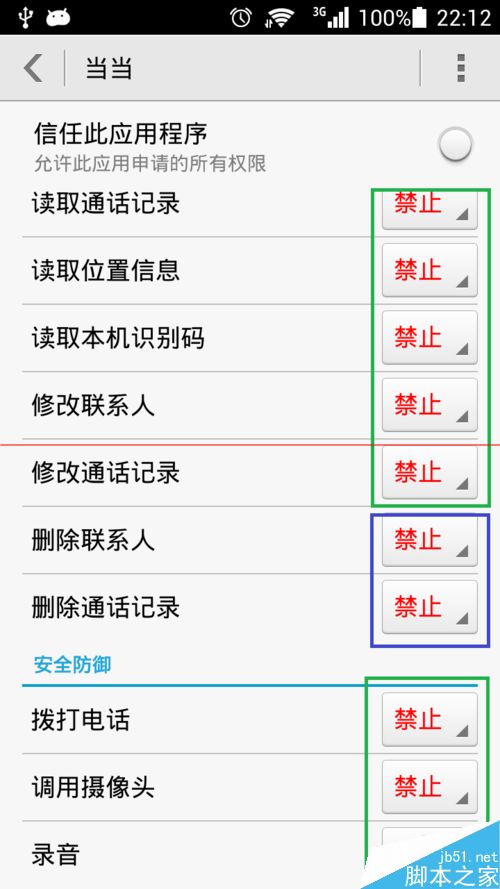 4、找到你要进行权限设置的软件,你会看到软件运行需要的很多权限。将不必要的权限全部禁止即可。之后你又可以放心大胆的使用该软件了。