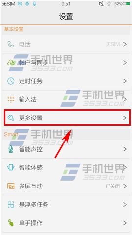 1)打开vivo X5Max手机【设置】点击【更多设置】。(如下图)