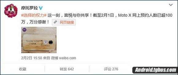 目前Moto X手机预约量达到了100万,这款售价售价为2999元,并有三款颜色供大家选择。