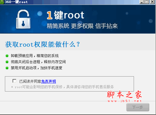 3、按下“一键快速获取ROOT”,然后等待完成,并重新启动手机。