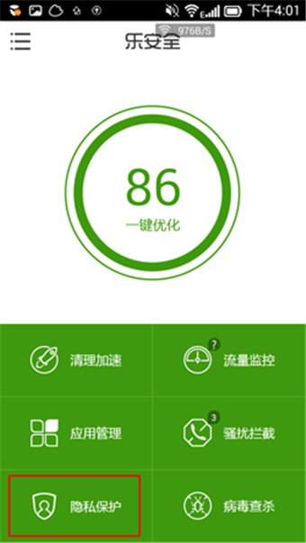 1.在“乐安全”中选择“隐私保护”