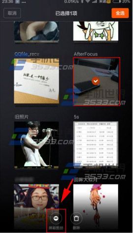 小米Note隐藏相册方法:勾选【相册】照片点击【屏蔽图册】即可隐藏相片。(如下图)