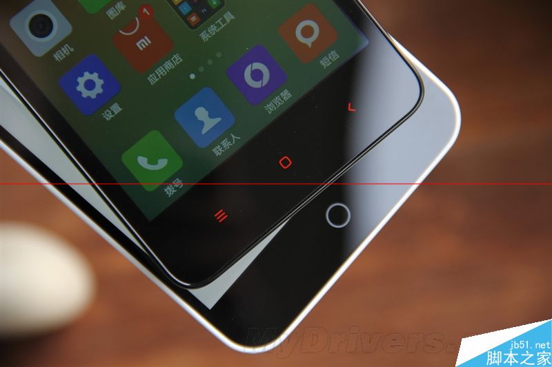 红色虚拟键和白色小圆圈都已成为各自的经典设计,极具辨识度。同时,魅蓝Home键支持背光、兼备呼吸灯效果;而红米采用的红色荧光涂料,本身不发光。