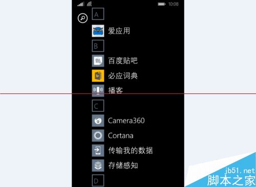 1、直接在“开始屏幕”中左划,进入“软件列表”