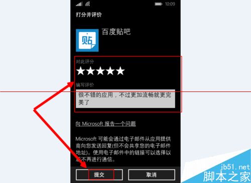 6、打好分数输入评价,点击“提交”,即可对该软件进行反馈