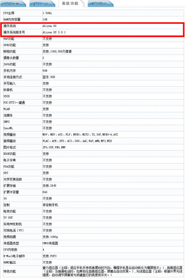 魅蓝型号M465A,运行阿里云OS