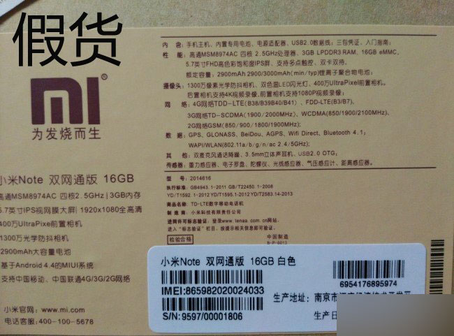 随着小米Note的热销,很多网友都很难在小米官网抢到这款手机,于是一些网店甚至线下实体店开始出现了一些鱼目混杂的山寨小米Note。现在不发厂商和商家的仿冒手段层出不穷,一般用户很难分辨自己买到的小米Note究竟是原装正版还是山寨货。所以下面小编就来教大家辨别山寨小米Note的方法。