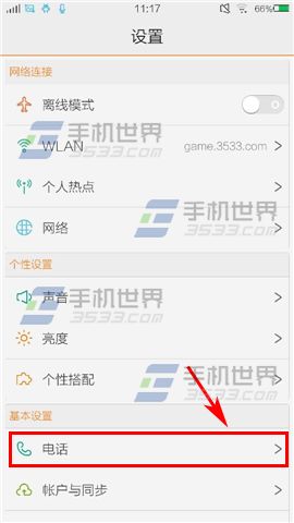 1)首先打开vivo X5Max手机【设置】,点击【电话】。(如下图)