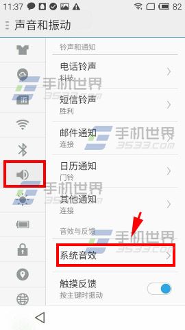 打开魅族mx4pro【设置】点击【声音和振动】,如需关闭主键震动请将【触摸反馈关闭】,进入【系统音效】根据需求关闭触屏所发出的声音。(如下图)