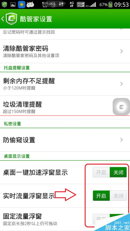 5、在设置页面最下方可以看到流量悬浮窗控制开关了,如下图所示