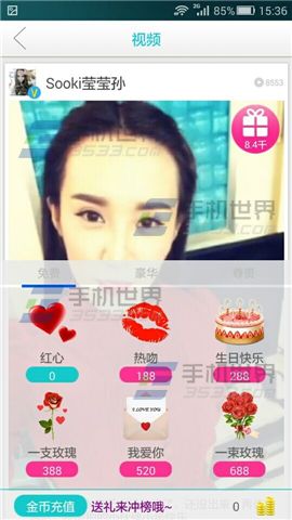 2)点击视频右上角的【礼物标志】,然后选择一个礼物即可。(如下图)