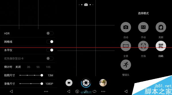 魅蓝的拍照界面继续还是Flyme的样子,和魅蓝Note、MX4、MX4 Pro上的并无二样,左右滑动切换模式,提供手动模式和HDR模式拍照功能,操作足够直观,只不过因为处理器相对于高端机型偏弱很多,切换模式在滑动完毕之后,需要等个半秒钟左右的时间,所选择的模式才会启动(当然滑动是很流畅的),长按屏幕一点也被设定成了对焦测光+按下快门的设定。