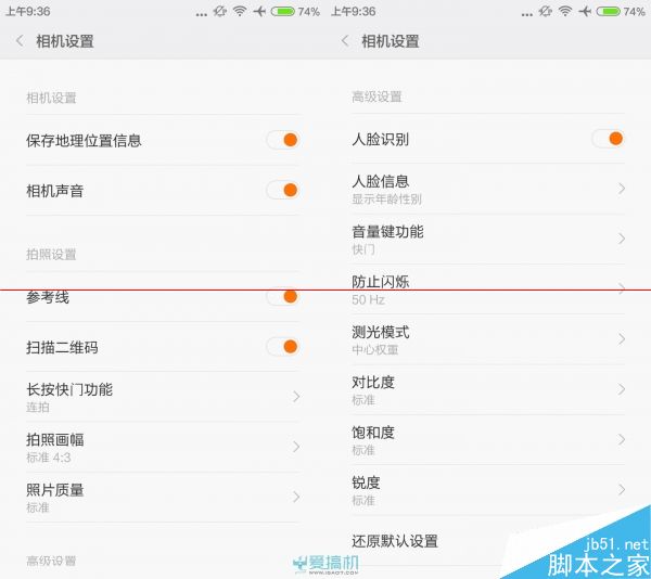 如果就相机的UI来说,个人会比较喜欢操作更加流畅并且UI更加清爽的魅蓝,在功能性上面,二者则差不多,至于对焦速度则是红米2略快,本次评测之中将尽量使用自动模式进行拍摄,不过在白色背景色的摄影棚之中,由于需要调高曝光补偿,所以二者均切换到手动模式,将曝光补偿调至+1,其余设定保持自动,至于红米2那些调节画面锐度饱和度的选项,在此使用标准。