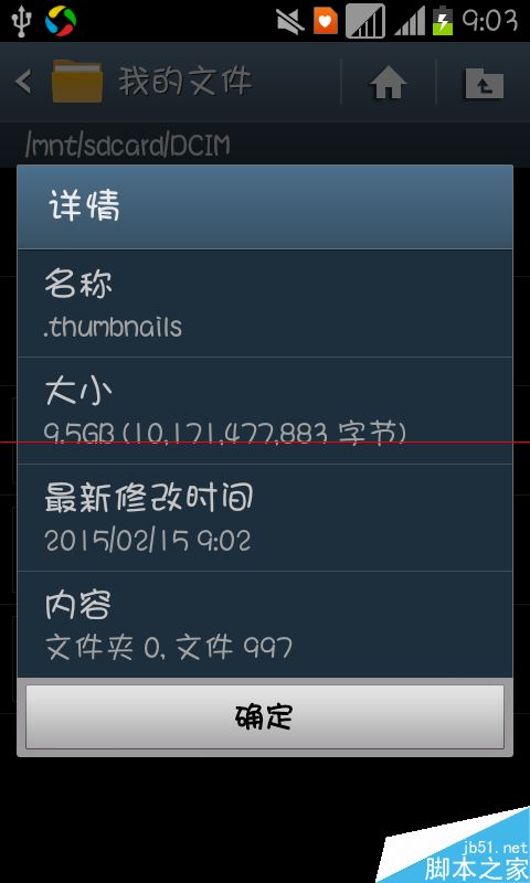 8、这个文件夹 为相机缩略图 大小为9.5G ,我们可以选择长按删除即可。