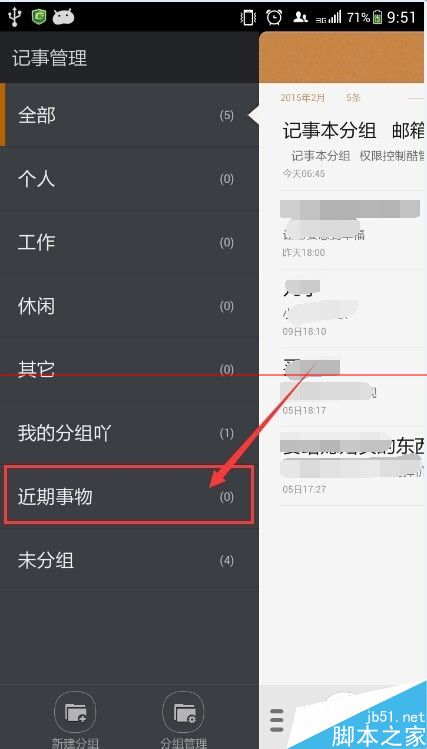 7、在分组里面,我们选择新建的“近期事物”分组就可以了。