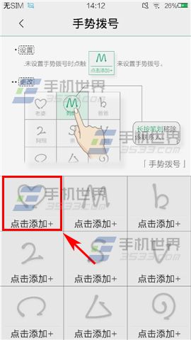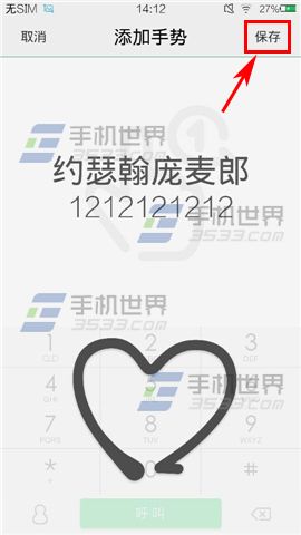 2)点击【手势拨号】,选择一个手势,如【心形】。(如下图)