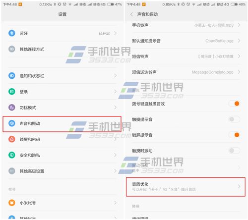 1)打开小米Note手机【设置】点击【声音和振动】选择【音质优化】。(如下图)