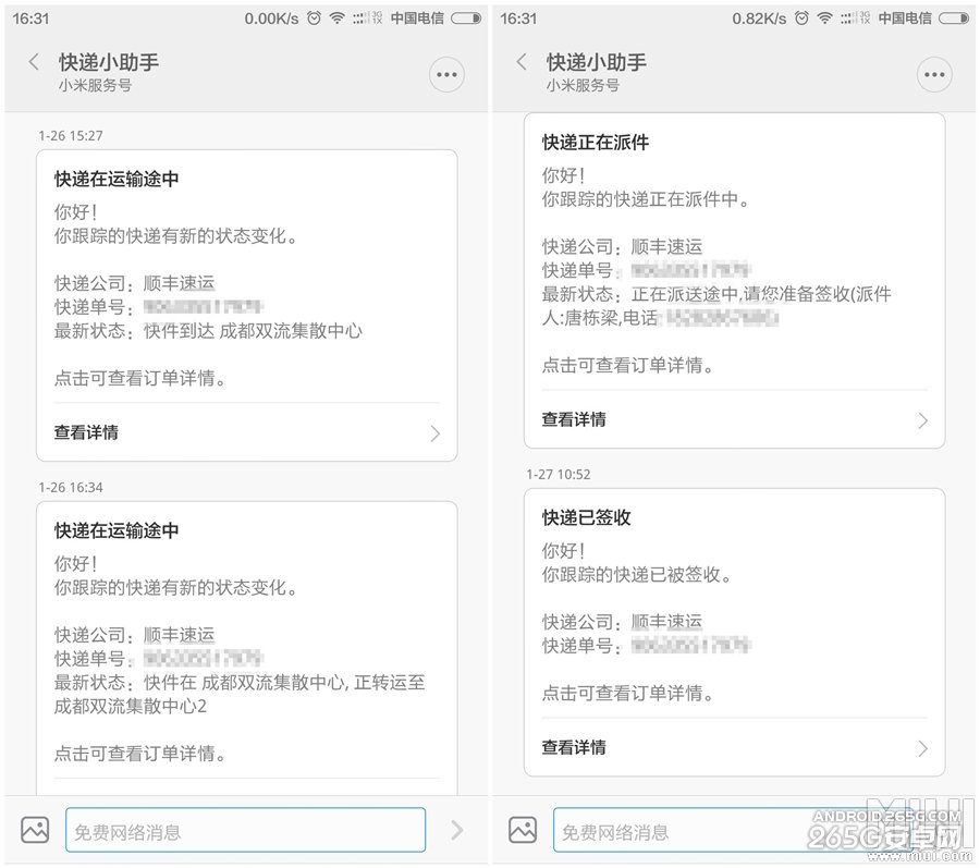 联网下(WIFI或者数据流量),当快递信息有更新时,你的手机就会收到短信通知,免费的喔!