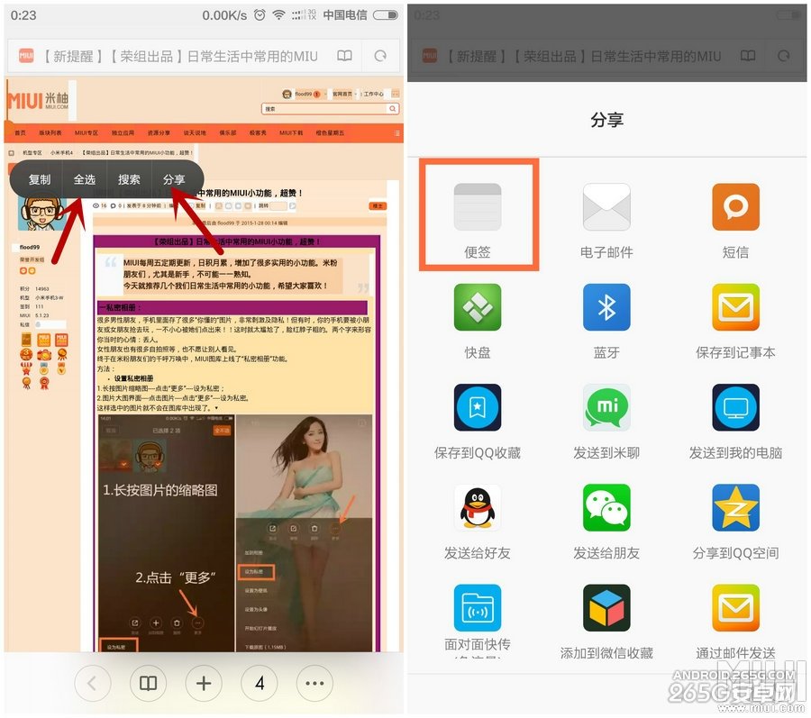 看见朋友圈里,很多朋友会发一张长图,里面有图片和文字。这是怎么实现的呢?MIUI的便签功能,让你手到擒来。