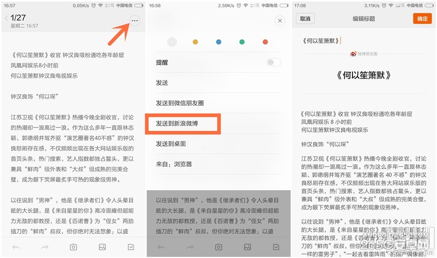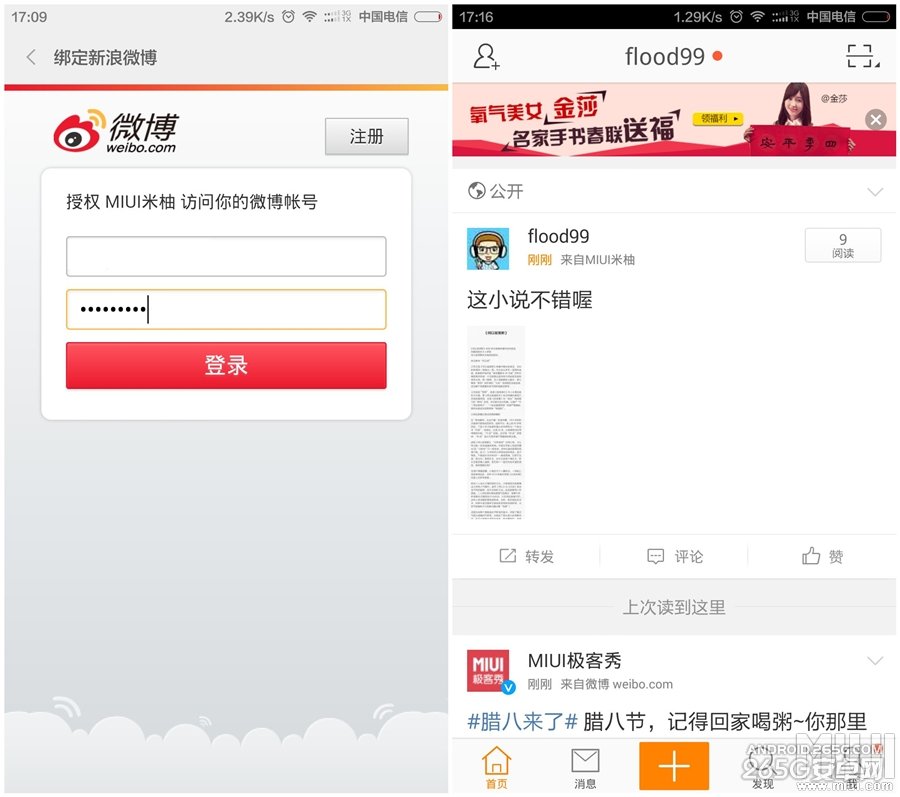 授权MIUI访问你的微博账号,然后就可以看见该长图,发到了你的微博界面。