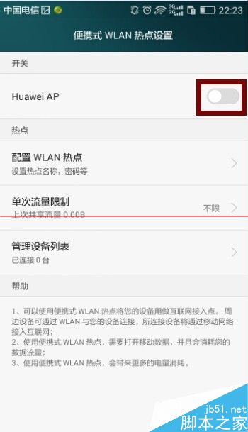 主要介绍设置华为荣耀4X的便携式热点的方法
