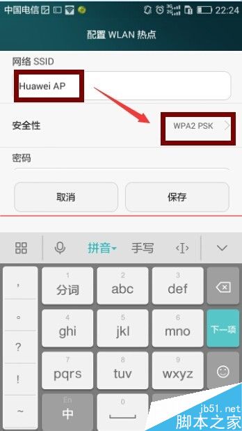 8、在<网络SSID>里修改热点名称, 安全性保持不变:
