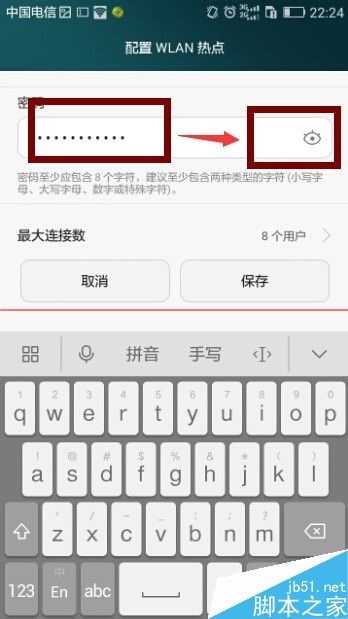 9、在<密码>一栏,对登录密码进行修改,眼睛可以使设置的密码可见: