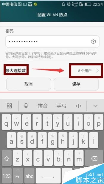 7、在<热点>里点击<配置WLAN热点>,对热点的名称,用户数,登录密码进行配置: