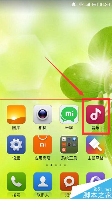 1、首先,小伙伴们在自己的小米手机的桌面上找到那个“音乐”,点击启动音乐。