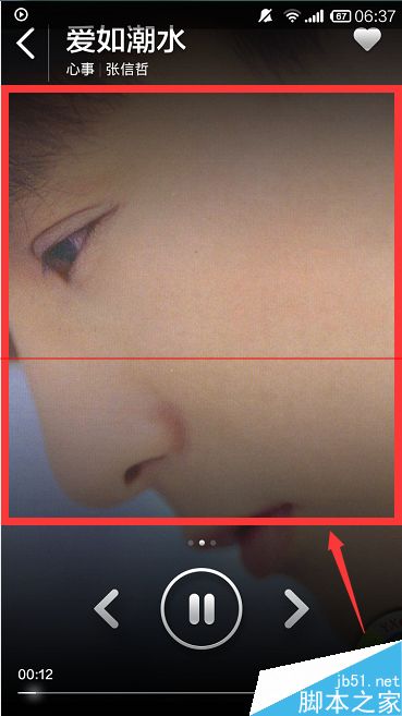 4、当我们选择了歌曲,播放以后,就会出现如图所示的歌曲播放界面,小伙伴们在歌曲标题和下面的按钮之间的那一块区域,也就是图中红色框框圈住的那块地方,任意点击一下,它就会在歌曲标题下面显示出一排按键工具栏了。