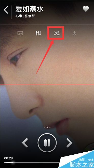 5、第三个按钮,就是小伙伴们设置音乐播放的模式需要使用到的功能键。两个箭头的是“随机播放”;一个箭头的是“列表循环”;一个箭头加上一个数字1的就是“单曲循环”。我们点击第三个按钮即可进行相应的切换。需要设置单曲循环的,就多点两个第三个按钮即可。