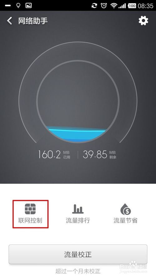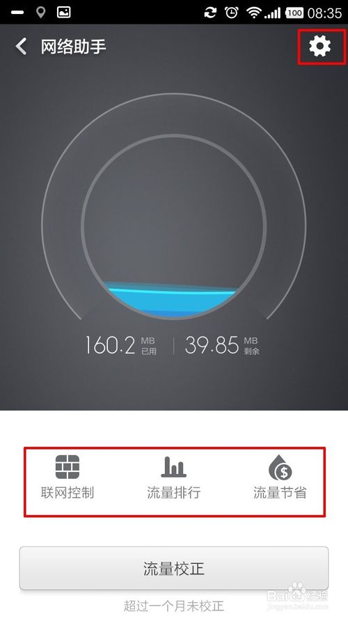 6、点击进去还可以设置应用程序的联网控制、流量排行、查看流量节省的信息。他的右上方的“齿轮”可以设置例如套餐总量、流量校正等一些操作,如下图所示