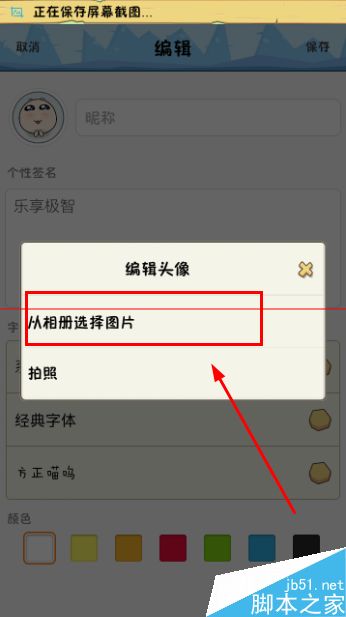 4、小编以从相册添加头像为例。而拍照的原理和添加是一样的。