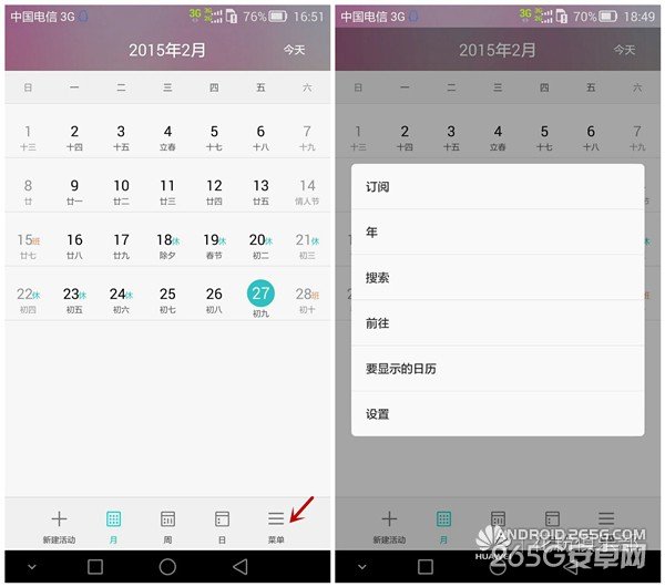 在右下角的菜单之中,可以对日历进行相关的设置。