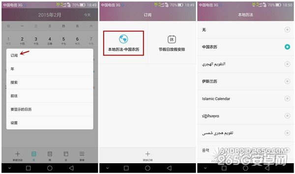 订阅中,本地历法,提供了很多国家的历法选择。