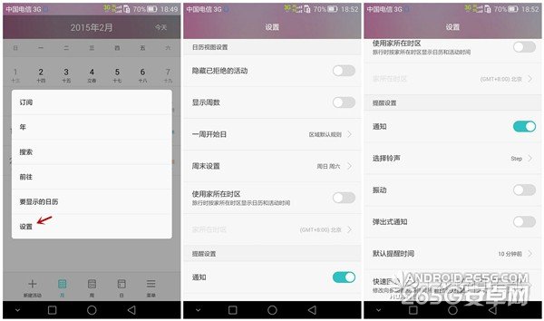 最后在设置中,可以对日历的视图以及提醒进行详细的设置。